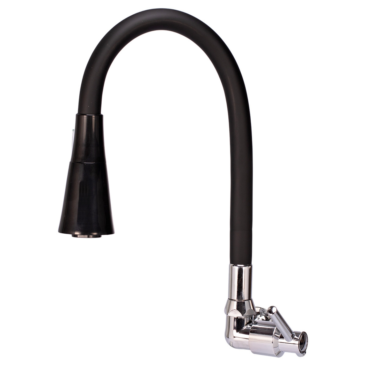A Torneira para cozinha de parede na cor cromada, possui bica flexível com arejador cônico;